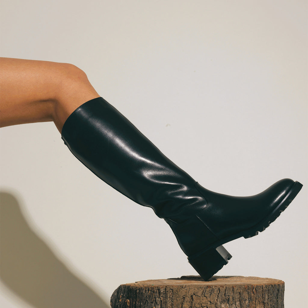 • Polished Leather Stack Heel